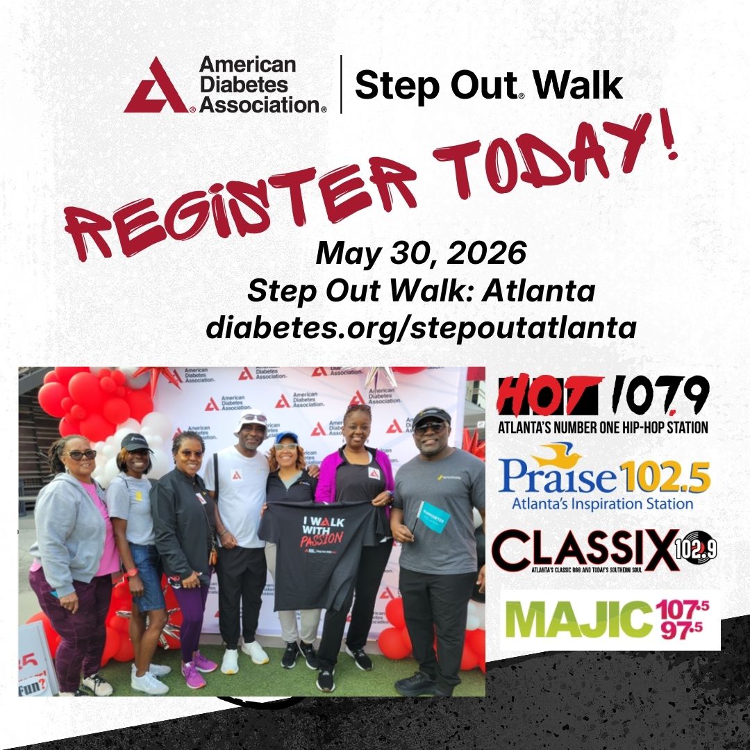 Join Radio One Atlanta for the American Diabetes Association Step Out Walk With Passion 2026, Saturday May 30th at Atlantic Station starting at 9:00am! Join us for a fun day celebrating patients, caregivers and the fresh air as we help to raise funds for diabetes research, advocacy and education. Diabetes affects over 38 million children and adults in the United States: that’s 1 in 10 Americans. And every 26 seconds someone in the U.S is diagnosed with diabetes.
